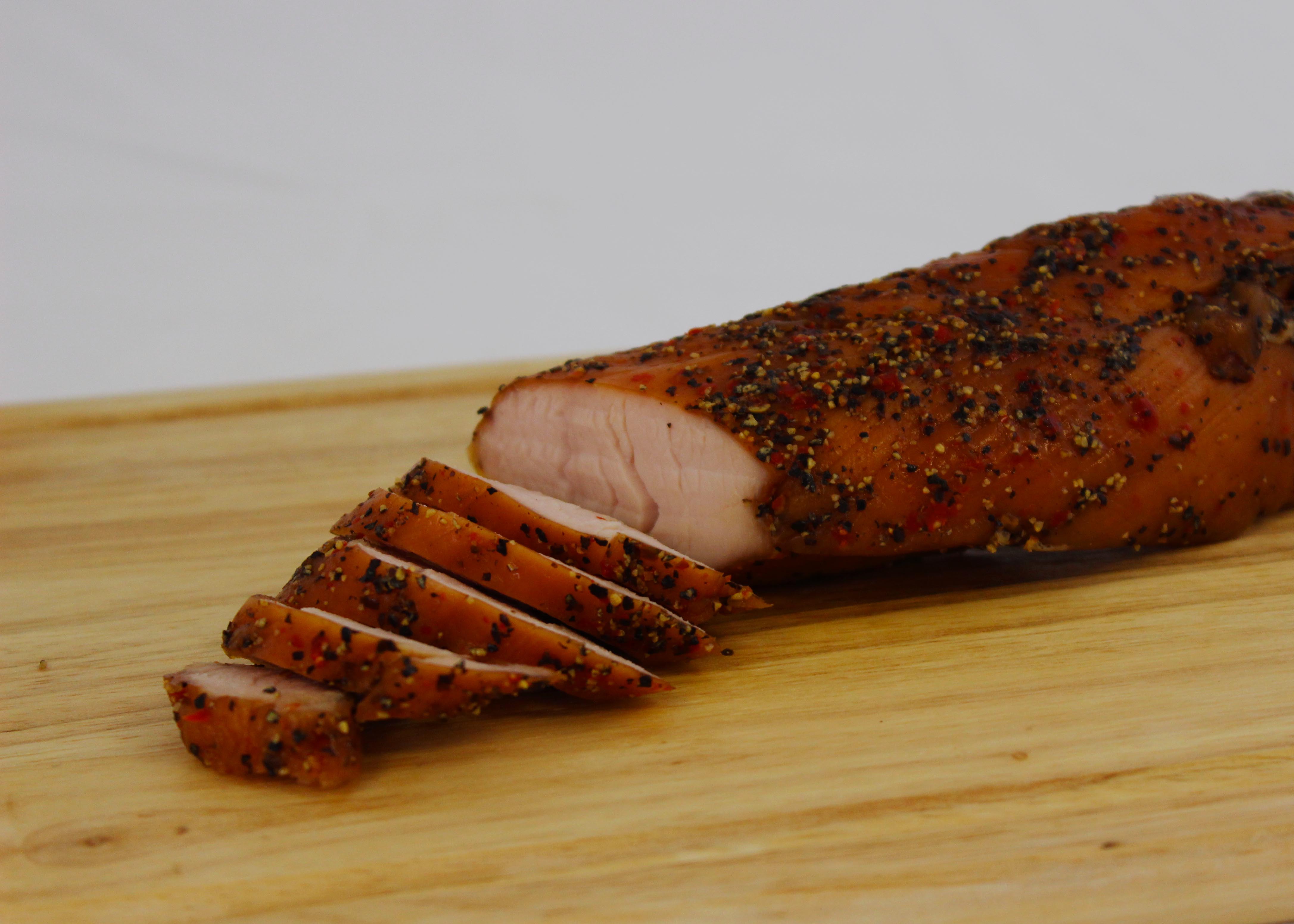 We take whole pieces of turkey and pork and season with pepper and brown sugar to create an irresistible treat. These are fully cooked and ready to eat! Just slice and eat with cheese and crackers, or use it to make a delicious sandwich.